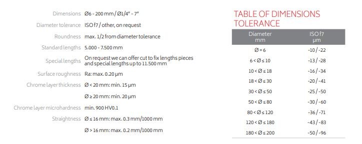 Sert krom kaplı miller genellikle CK45 ve CK55 kalite çelikten üretilir.